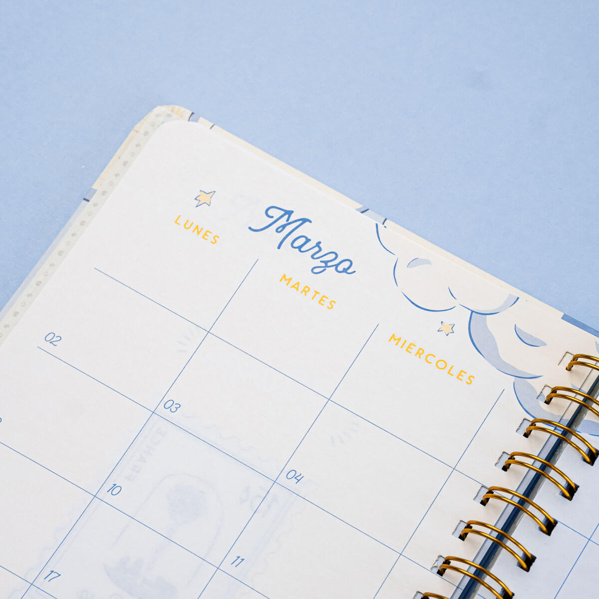 Incluye planeador mensual, stickers decorativos y secciones para anotar tus metas y pensamientos. Su argollado metálico permite abrirla fácilmente y su diseño funcional hace que cada página sea una oportunidad para soñar.