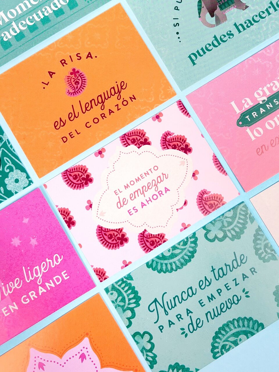 Cada día toma una tarjeta diferente, lee la frase, voltéala y realiza el ejercicio sugerido en tu libreta. Un pequeño hábito diario que transforma la forma de ver tu mundo.
