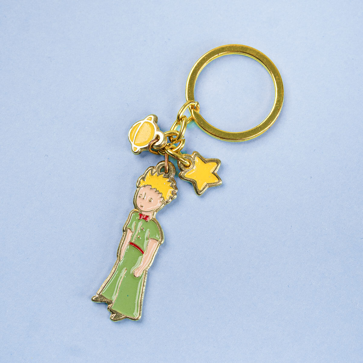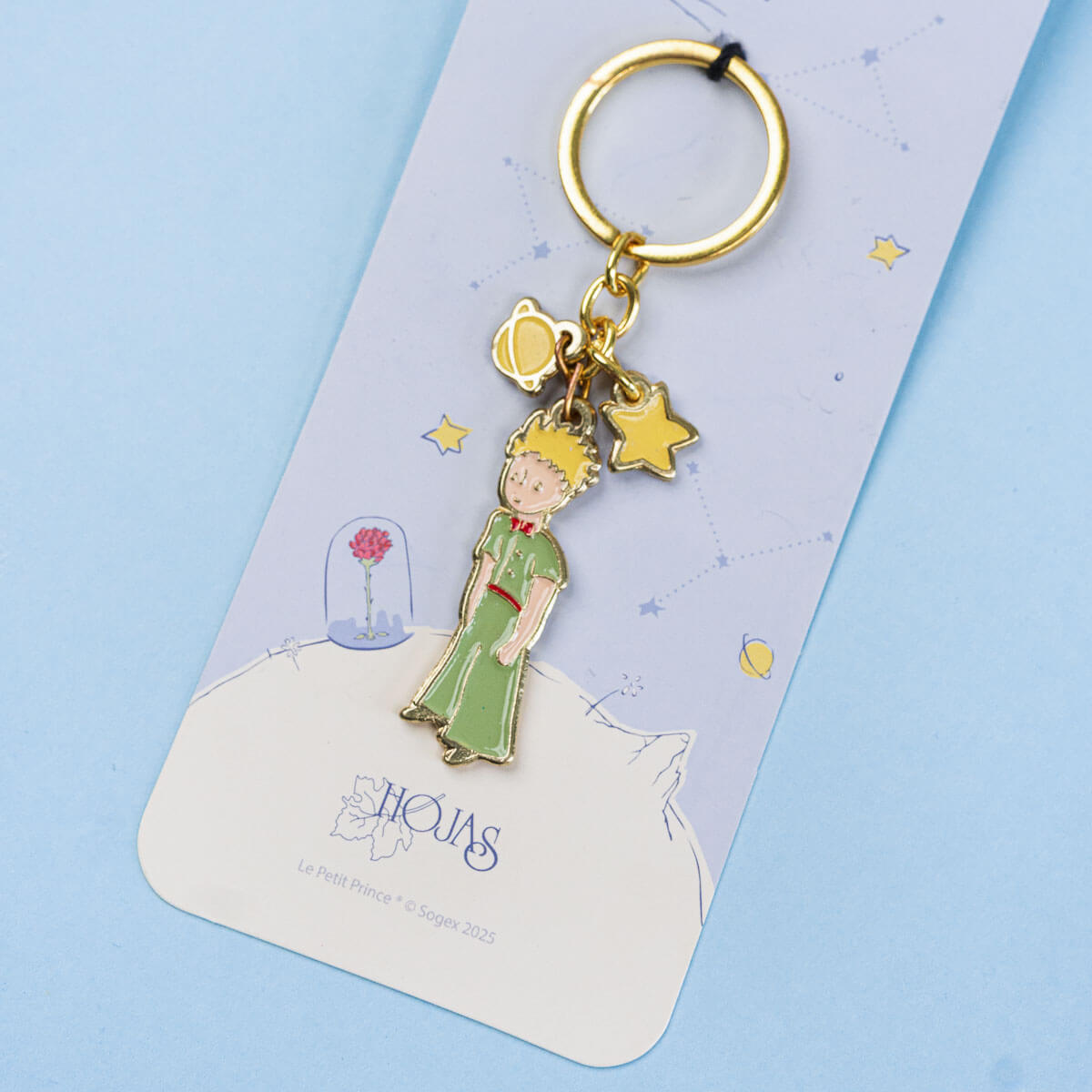 Este llavero inspirado en El Principito está lleno de encanto y simbolismo. Con detalles en dorado y un acabado brillante, es el accesorio perfecto para darle un toque mágico a tus llaves, bolso o cartuchera.