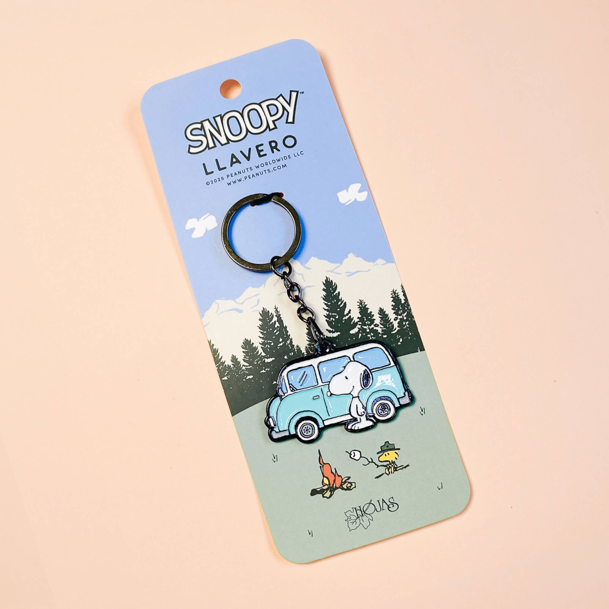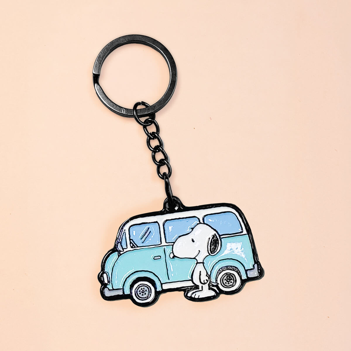 La icónica van de Snoopy es la protagonista de este llavero. Elaborado en metal y de tamaño perfecto para acompañar a tus llaves, maleta o a donde quieras llevarlo.